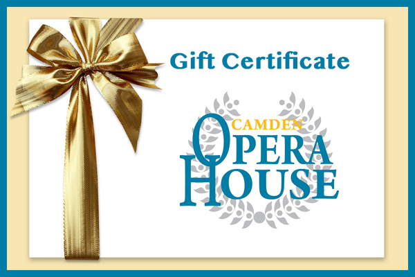 Give the gift of live performance! Camden Opera House gift certificates can be purchased for any amount and never expire. Gift certificates can be used to buy tickets online or via the box office (207) 236-3154. Note that these certificates are redeemable for COH-produced presentations only.